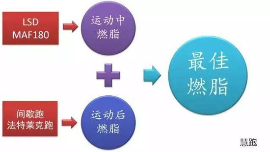 如果想要达到较好的燃脂效果,运动中和运动后都能够燃烧脂肪是最佳跑步方法。运动中通过中等强度、长时间运动大量消耗脂肪,运动后通过较高的过量氧耗保持脂肪的供能效率。因此跑友们可在正常进行LSD或者MAF180训练后,进行2~3组的间歇跑。例如进行2~3组400米跑,这样就可以达到通过间歇跑提升运动后过量氧耗,实现运动后能够持续消耗一定量脂肪的目的。