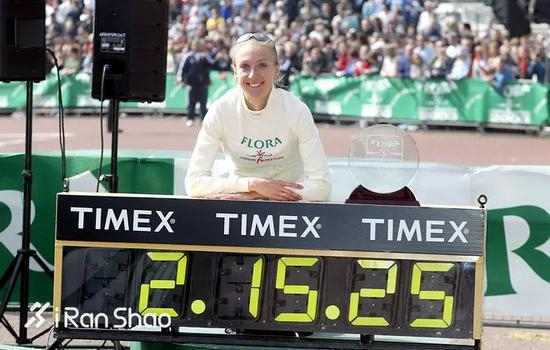 另外一个女子马拉松纪录是男女混合比赛的纪录,英国名将拉德克里夫(Paula Radcliffe)2003年同样在伦敦马拉松创造的2:15:25。