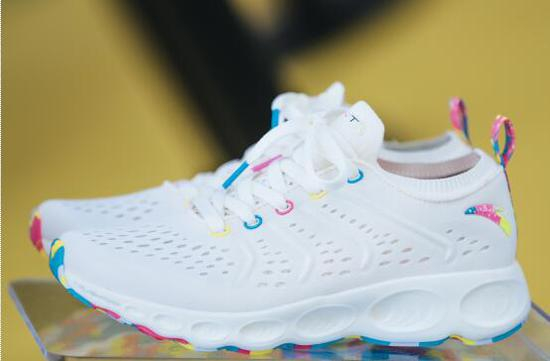 专区内秀出了A-FLASHFOAM跑鞋赛事版。与常规版不同的是,纯白的鞋身搭配彩色的鞋底,兼顾了运动与潮流。A-FLASHFOAM跑鞋在诞生之初便是安踏在“弹”上的最高科技,此次的升级让跑鞋再次进化。鞋面采用了一整片没有缝合线的超轻网布材料,有着较强的柔软度,鞋身各处都有网眼设计,透气性极佳;鞋侧内外各设计有4个造型不同的支撑条,让鞋面立体感更强,提高鞋面的支撑性。中底高分子结构,通过FlashFoam粒子的迅速收缩,瞬间吸收下踏的冲击力。同时,被压缩的粒子到达极限后,像弹簧一样开始反弹。无数高密度粒子反弹的能量输出强大,从而给跑者提供超强的回馈能量,全新升级的加厚版本,带来更为深度的回弹体验。本次安踏专区内的“非牛顿流体区”的系列弹力体验活动,和穿上A-FLASHFOAM跑鞋后的弹性体验相得益彰。