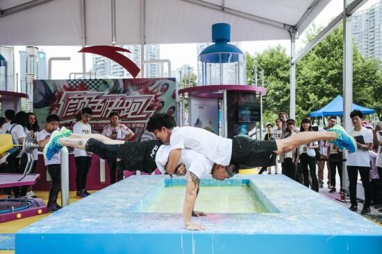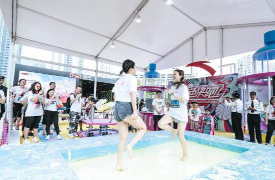 专区内亮点颇多,符合年轻人社交潮流新方式的抖音区域、秀出跑者个性的装扮区、多台单反环绕拍摄的“子弹空间”拍照区以及风靡国外的“非牛顿流体区”接连被人群攻占,更有街舞、跑酷的运动高手在流体池比拼实力,大秀高超技巧。年轻人不仅可以在The Color Run赛道上挥撒粉末、尽享欢乐,还可以通过安踏专区的系列活动挥发个性、展示自我。