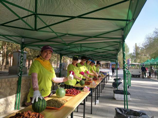 在赛道沿途和起终点,组委会为跑者精心设计了丰富的特色文艺表演,敦煌盛典、丝路花雨、激情街舞、古筝演奏、骆驼商队……通过不同赛道路段的标识牌,让跑者了解敦煌的文化、诗词、感受古典与现代文化碰撞的同时完成这场西域修行之旅。赛事补给方面延续了往届的良好口碑,除了怡宝提供的饮用水和魔力功能饮料之外,大枣、葡萄干、杏干、西瓜、梨、苹果、香蕉等当地特色补给应有尽有,跑者在终点瞬间补满能量;而古装的书法大师手写的通关文碟完赛证书,又成为刷爆朋友圈的热点。来自瑞士的跑者瑞恩-弗朗西斯对完赛证书赞不绝口:“书法很棒!这是中国古代的通关证明,通过跑马拉松了解中国文化这还是第一次。”