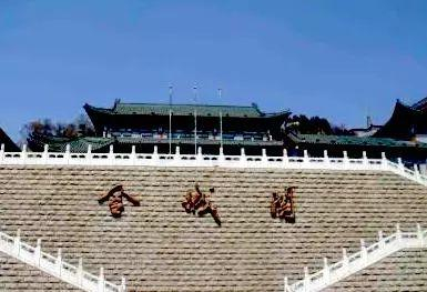5公里后跑过文化广场便能看到颐园公园,远远望去,在黄河对岸竟然用花坛组合成了耀眼的“兰马加油”,选手穿过颐园中树木的缝隙便可看到,实为壮观。