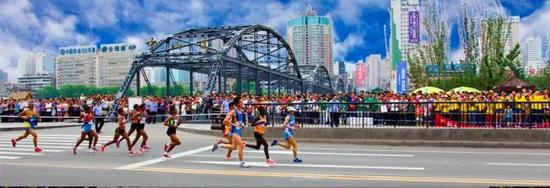 跑友们渐渐可以看到主会场和终点线,胜利在望王者归来,虽然已经临近正午,但是热情的兰州人民把赛道紧紧包围,更是用西北的方言不停的冲你加油。