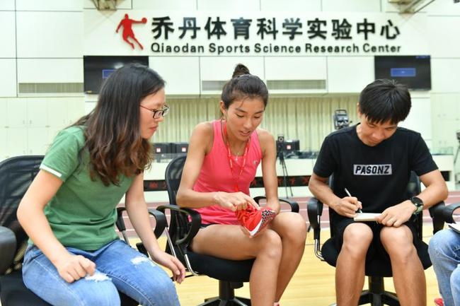 在乔丹体育公司科学实验室,通过人体运动捕捉、足形数据采集、步态分析、肌电测试等实验项目,工作人员为焦安静建立起专业、完善的个人数据库,为后续专属定制产品做准备。完成个人数据采集后,焦安静还接受了媒体采访,分享自己的跑步故事、跑马历程,以及签约乔丹体育公司的初衷、未来规划。为了更好的帮助产品的研发设计,焦安静还特别与鞋服商品设计师、产品经理做了深入沟通,提出了很多产品方面的想法和建议。在媒体采访和产品沟通过程中,多次出现“逐影”字眼。原来在“如何选择跑鞋“这个问题上,焦安静说她倾向于选择竞速型跑鞋,而乔丹体育公司科学试验室用三年时间打磨的马拉松专业跑鞋——逐影,正好满足焦安静对跑鞋的期望和想象。