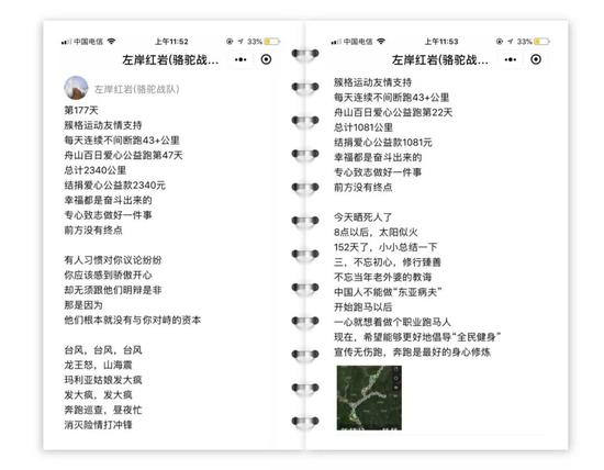 两百天来,57岁的左岸大叔每天都在各个跑步群中打卡,分享跑后感受。他收到了很多的敬佩之语,也承受了很多的质疑之音:每天这么跑,疯子吗?