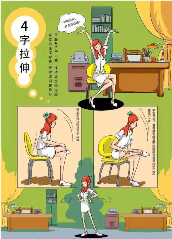 ⏩ 该动作主要拉伸臀部肌肉,某些类型的下背部包括臀部疼痛,比如梨状肌综合征,通过这个动作可以很好地加以缓解。可以采用站姿、坐姿、卧姿,在采用如卡通图所示卧姿时,翘二郎腿同时躯干前屈,可以感受到臀部肌肉拉伸
