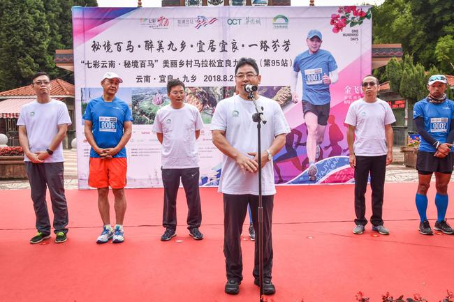 宜良县委常委、县委宣传部长张继帅主持了起跑仪式,中共宜良县委副书记、代理县长刘中政在活动现场向来自全国的跑友推介了宜良,并在致辞中说:“马拉松是一项具有非凡魅力的运动,因为它不仅是历史最悠久、距离最长的田径项目,更集中展现了运动员挑战自我、超越极限、坚韧不拔、永不放弃的精神追求。不是每一个跑步的人都能梦想成为奥运冠军,但是每一个人都可以梦想完成一次马拉松。希望今天的各位跑友,用速度和激情展示宜良的开放和活力,用力量和坚韧体验马拉松的无穷魅力,用拼搏和汗水演绎生命的无限精彩,在青山绿水间跑出好成绩、跑出好心情。”