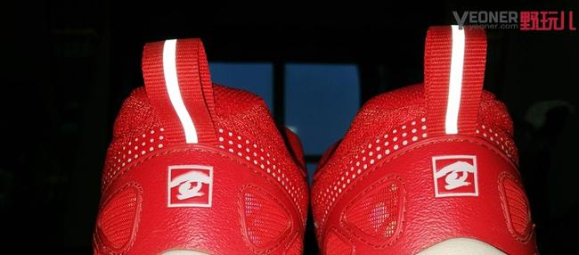 大红鞋中底还嵌入了X插片,防止运动扭伤。