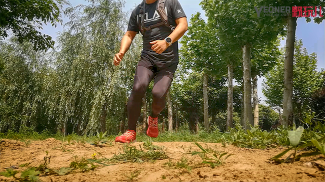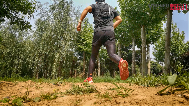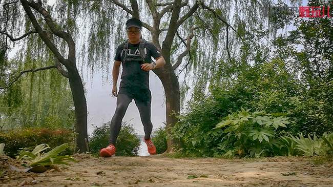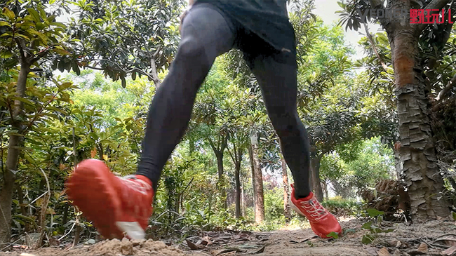 笔者在泥土道路上专门进行了类似于变向跑动的测试,即“之”字形跑动,测试跑鞋在跑动中的包裹性和稳定性,得益于探路者大红鞋良好的包裹性和大底的防滑性,跑鞋的稳定性能也很优异,除了变向瞬间脚掌在鞋内部略有滑动感之外,跑鞋贴合脚的部分很舒适,可以放心的在路面上跳跃、变向。