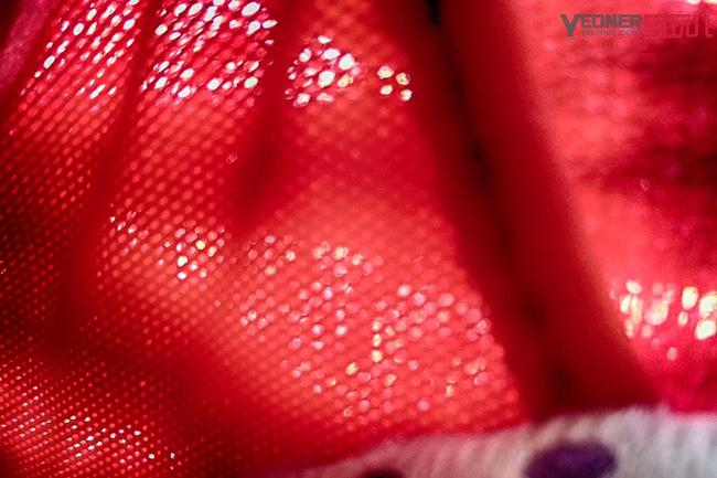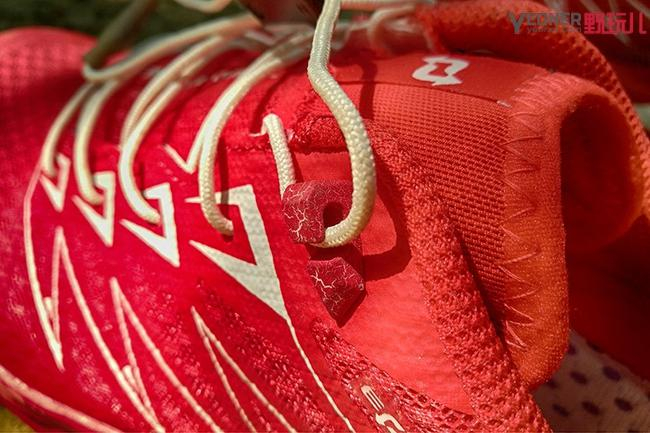 大红鞋采用双重鞋面收纳紧固特别设计,除了传统的交叉绑缚外,在鞋口处还设计有两处“勾型”结构,使跑步鞋带更加不易松懈,同时让鞋舌在运动中不会偏移,鞋子和足背更加贴合稳定,这点特殊设计既能稳定跑鞋又提升了包裹性。