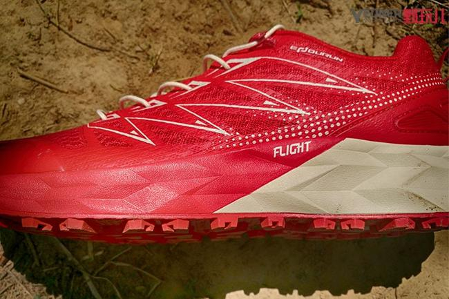 探路者2018大红越野跑鞋采用Flight探路者创新型超弹中底配方,具备良好的缓震性能,用这种材质制作的跑鞋,可以有效减轻跑步过程中,地面带给跑者关节的冲击力,提供舒适的脚感,同吋Flight材料的高回弹性能,将能帮助落地脚迅速离地,提升跑步速度。