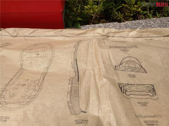 包裹鞋的牛皮纸与其他品牌的大不相同,与鞋盒一样,都是量身定做的。牛皮纸上是跑鞋的剖视图,也有些跑鞋设计图纸的意思,还是非常有意思的,相比较其他品牌一般的白纸要好的多。