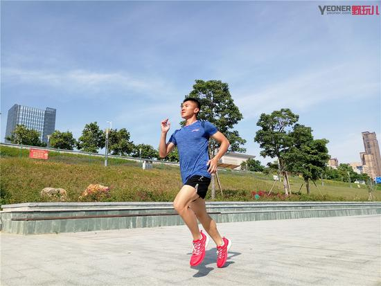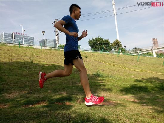 既然是越野跑鞋,那么复杂的泥泞路面自然要测试一番。不过福州的五月天气晴朗,地面比较干燥。我穿着大红PAO越野鞋来到土地上肆意奔跑。当然,刚开始的时候还是比较小心的,怕会滑倒。但是慢慢的适应以后,一点一点发力,发现穿着大红PAO鞋在这样的路面上奔跑根本毫无压力,只要不以百米冲刺的速度狂奔,一般是不会滑倒的。而在复杂的土地路面上,跑鞋的抗扭转性能就发挥了巨大用处。可以说测试期间,对这样的路段拐弯的时候还是非常稳的,没有要崴脚的感觉。