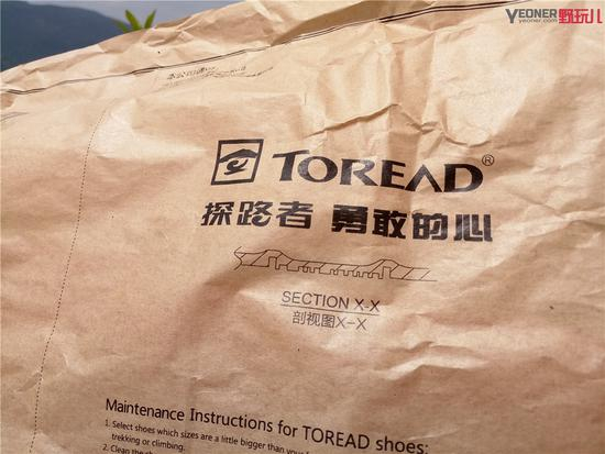 跑鞋的鞋盒与鞋子本身相呼应,大红PAO几个大字印在鞋盒上非常的显眼,还有探路者的LOGO。从鞋盒就可以看出探路者的诚意,可以说这个鞋盒是专门为了这双大红PAO越野鞋而量身定制的。