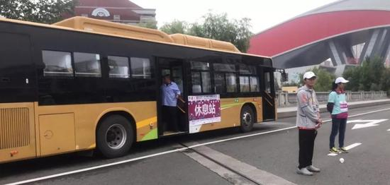 此外,厕所还配备了香薰纸巾,赛道沿线设有8个降温喷淋点,更有哈马首创赛道收容车的“一车两用”,在关门时间内,收容车用作“休息车”,供参赛者暂时休整,关门时间后,便成为收容车,沿途载未能完赛的参赛者去往终点。