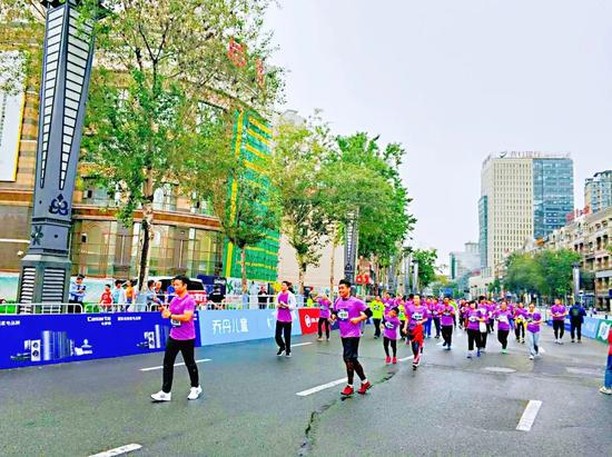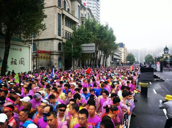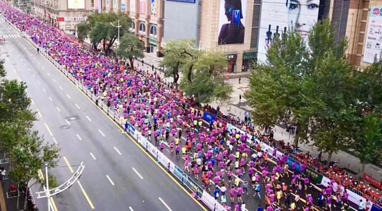 7:30,随着发令枪声响起,参赛者在漫天飞舞的金色和紫色丁香花瓣中,在响彻云霄的加油声和呐喊声中,带着满腔激情冲出起点,奔向前方。