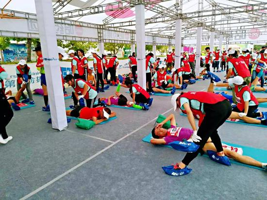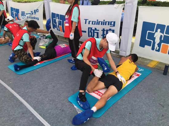 医疗方面,考虑到今年全半程参赛人数较去年增加了50%,组委会高度重视医疗保障工作,设7个医院作为定点医院,赛道沿途配备31辆救护车、27个医疗点(站)、65组现场救援组(流动AED组)、35种不同药品,150名急救跑者,赛道上每隔100-150米左右有1位志愿者,每隔100-150米左右有一名赛道医疗观察组成员进行巡逻(CPR组),以最大的医疗保障能力和科学的排布保证参赛者安全完成本次比赛。
