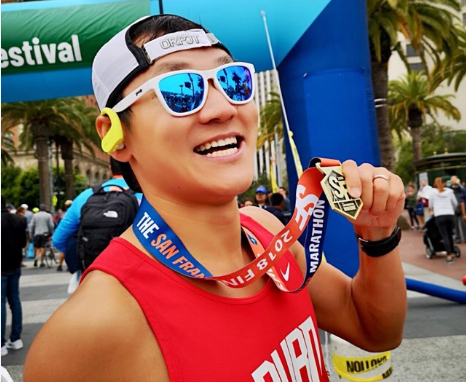 专业跑者LeonGou会选择一款索尼WS623头戴式蓝牙音乐播放器陪伴自己。不久前的旧金山马拉松上,他戴着WS623以1:14:37完成了21.39公里半程马拉松,在年龄组排名第一,总排名第九,这也是唯一一个排行榜前十的华人名字,这个成绩也用50秒的时间刷新了LeonGou的PB。