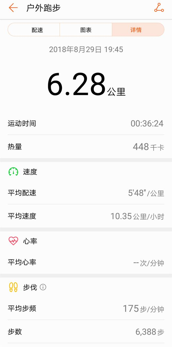笔者用跑鞋佩戴的方式,进行了一次5公里的测试,跑步时我还是携带了手机,这样华为运动健康APP能够实时为我播报跑步信息,跑完后,用手机APP查看自己的跑步数据,各种基本的数据一目了然。