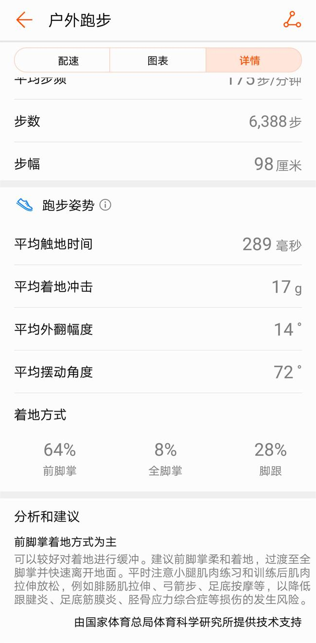 但最吸引我的还是专业跑步姿势的专业分析,虽然世界上没有决定标准的跑姿,但科学的跑步姿势能够让跑者事半功倍,也能减少受伤的概率。这些数据是其它运动手环,甚至专业跑步手表都不具备的,平时只能通过专业的机构进行付费测试。