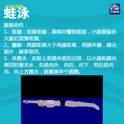 找了一组文字+动图的游泳教程,一次教你4种姿势,蛙泳、自由泳、仰泳、蝶泳,想拥有好身材却又怕热怕晒那就赶紧学起来吧!
