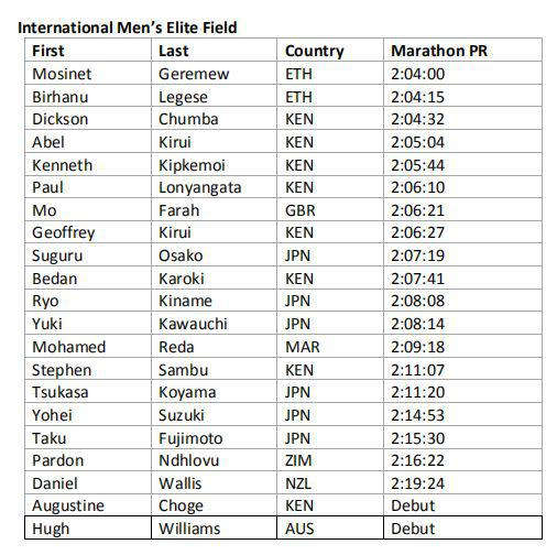 芝加哥马拉松男子精英选手一览(文中出现汉语精英选手均为音译):