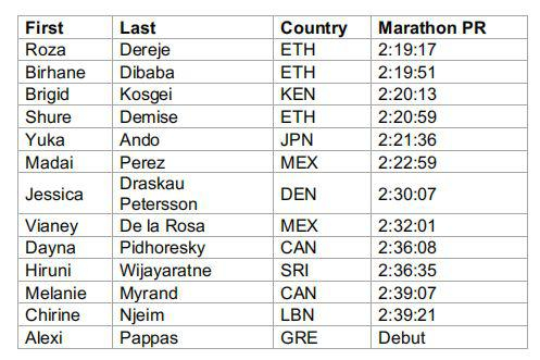 芝加哥马拉松女子精英选手一览: