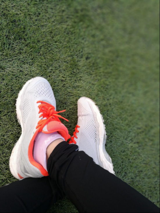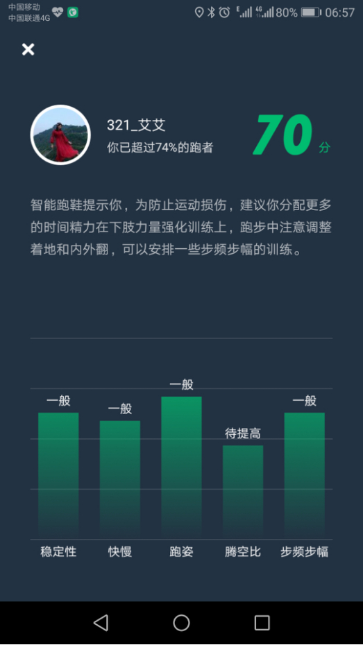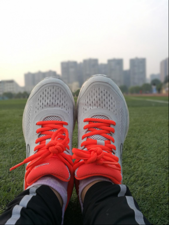 塑胶跑道试穿,。室外温度26摄氏度,运动过程中,脚部丝毫没有闷热感。包裹性也不错,鞋子缓震性很好,很舒服,通过与智能芯片的连接,得到很好地指导。我设置的是中级阶段训练,打开节拍器,180的节拍速度,只要你停下来,手机就会提示你配速过慢,步频过慢,不给自己任何偷懒的机会。