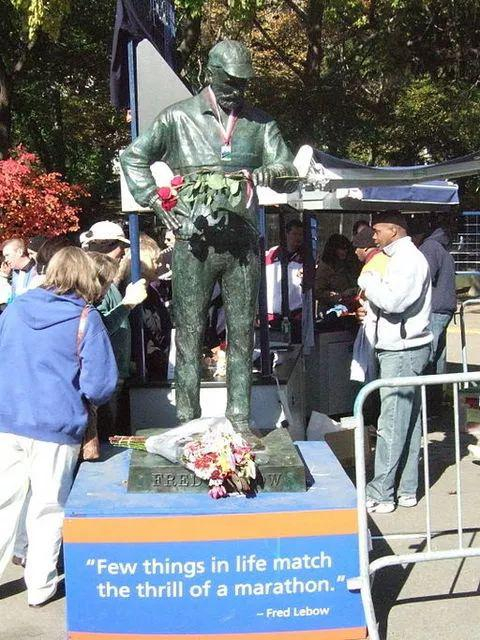 现在勒博的雕像矗立在纽约马拉松的终点,欢迎每位选手完成纽马的挑战。雕像底座刻着他的名言:“生活中没有事情能配得上马拉松带来的快感。”