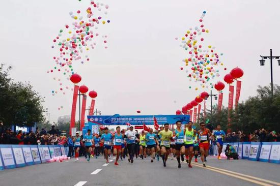 10月21日上午,HCFM2018银龙杯河间诗经国际马拉松在河间市瀛洲公园正式发枪,5000名中外选手用奔跑的方式为这座2700多年历史的古城注入新的活力。