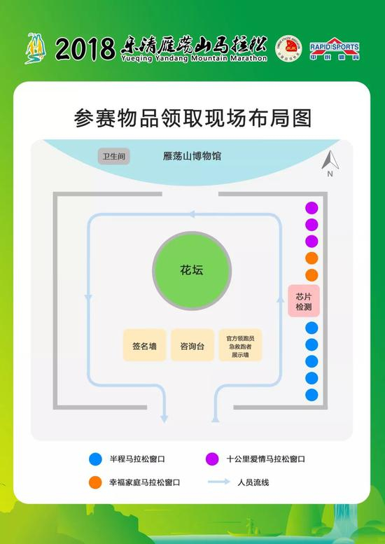 1、领物现场设置芯片检测窗口,半程选手可前往检测号码布上的计时芯片,如有疑问请及时到组委会窗口进行咨询(注:十公里爱情马拉松和幸福家庭马拉松项目不需要检测)。