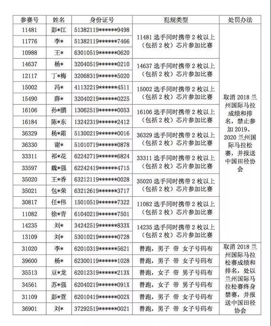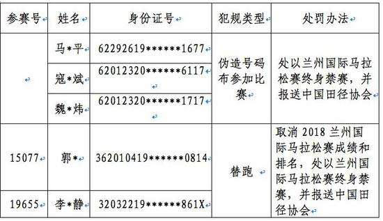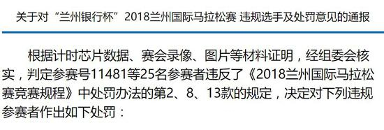 今年兰州马拉松就有三人,因伪造号码簿参赛被罚禁赛。