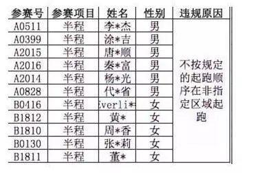 10月3日,在蒙自马拉松落幕之际,赛事组委会发出了违规选手的处罚决定:11名选手因不按规定的起跑顺序在非指定区域起跑,取消成绩,并全部禁赛2年。
