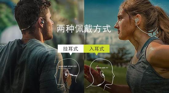 由于跑步是个长时间的剧烈运动,它对于耳机的稳定性要求很高,不能随便出线松动,为此,Jaybird X4 提供了两种佩戴解决方案。