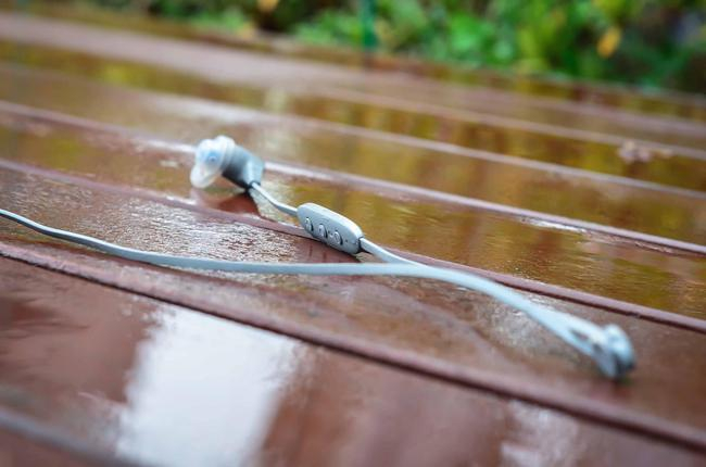 Jaybird X4 的防水级别是目前市售蓝牙运动耳机中较高的,可以直接把它放置在水中,笔者在拍摄时恰遇下雨天气,故在通电的情况下将X4放在水坑中十几分钟,拿起来擦干净后,使用起来,完好如初。