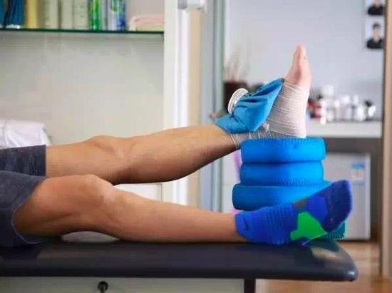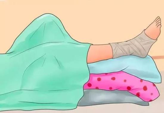 3。抬高患肢,将受伤的足踝放置高于心脏的位置,可减轻肿胀,缓解疼痛。
