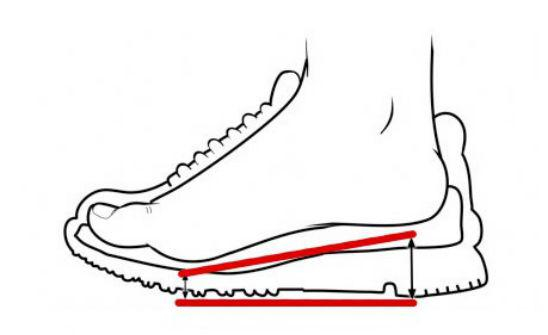 脚趾与脚后跟的高度差,也称为“跟趾落差”,如果没有落差,意味着这双鞋是完完全全平的鞋。