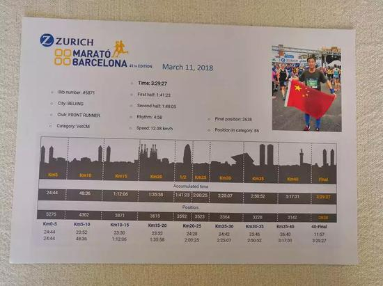 再比如2018年3月11日巴塞罗那马拉松,他跑了3:29:27,3月18日首尔马拉松他跑了3:29:30,相隔一周,成绩仅有3秒的差别。
