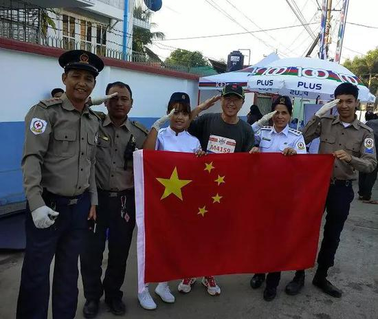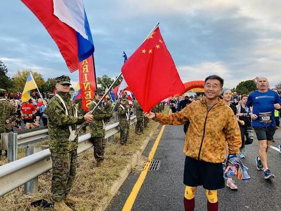 “我拿着国旗到终点的时候,其他的中国人都说要和国旗合照,特别好。而且我抱着国旗和那些外国人照相的时候,他们也很开心。”