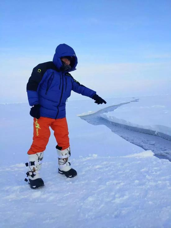 “进去的时候,哇,一望无际的冰块,特别兴奋,然后一想冰块下一万多尺的海水,那时候真的慌了,害怕。当时组委会他们也会担心,担心可能会断裂的冰块、担心万一撤退的时候飞机不能来接我们等。所以他们已经做了很全的紧急措施,比如就地取材准备够一个月使用的淡水,因为北极点窗口期只有一个月。”