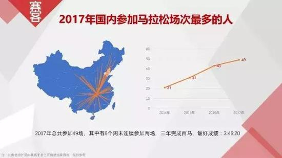 2018年8月份,在腾讯AI加速器 II 期开启之路遇到了小白哥,偶然提到了18年年初,东软赛客公布的《2017中国跑步市场数据大解析》一文,其中有一组数据显示“2017参加马拉松场次最多的一个人,共完成了49场马拉松”。