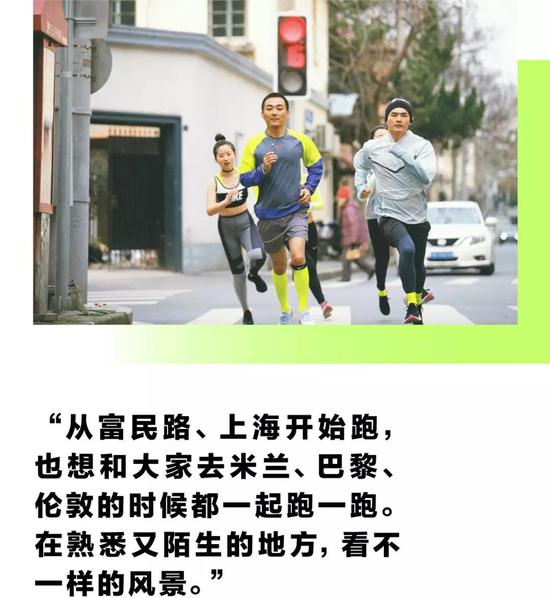 蕾虎跑团有着自己的独家路线:从富民路跑到长乐路,再到安福路和五原路——热爱艺术的人都迷恋老上海法租界的静美,这几条街道充满着烟火气息,又藏着很多新开不久的别致店铺。跑团成员们跟随着跑步歌单感受呼吸和心跳,享受忙碌一天中平静的当下,偶尔也会在跑步的过程中聊聊天,整齐的脚步声中夹杂着欢声笑语,飞快地掠过城市的街角。