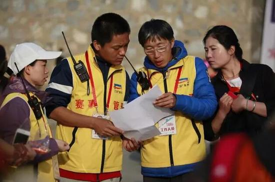 这里要注意了,沿途放人指引是一件很奢侈的行为:出于各种考虑,每个点儿一放就得是俩人。你除了得考虑好工作人员自身的安全问题,吃饭问题,上厕所问题,各种问题……最关键的是一定要培训好,这些年发生被工作人员指错路的事件也不是一回两回了。