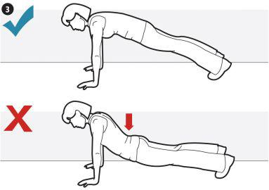1、完成俯卧撑时,保持腰背挺直,肩胛骨收紧,塌腰不仅达不到训练效果,反而导致腰椎压力增加和腰痛;