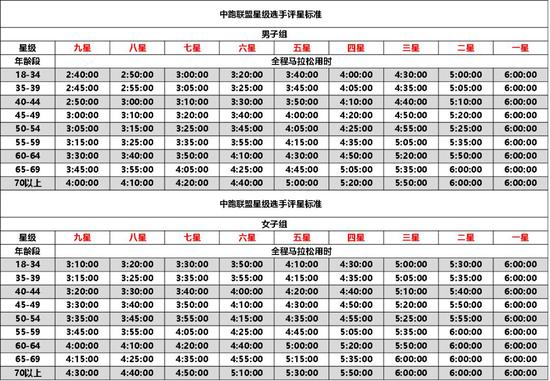 最新马拉松各年龄段等级表 快来对号入座