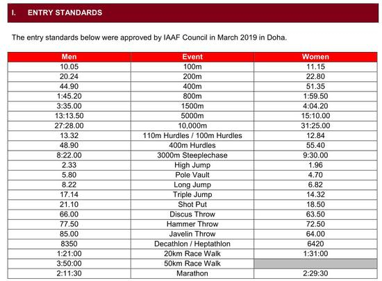 2020年东京奥运会达标门槛