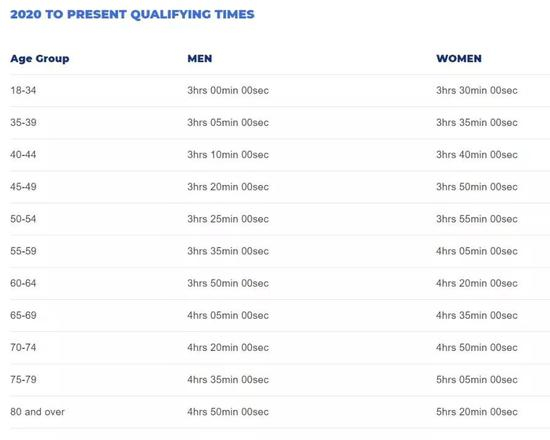 波士顿马拉松报名资格标准(BQ)