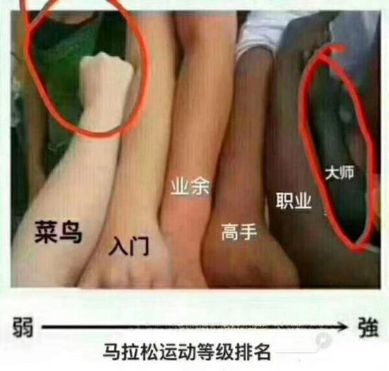 如果相对于专业跑者的等级水平,你在第几级?