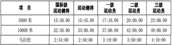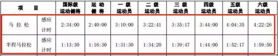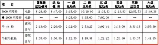 这个意见稿,将运动员分为了8个等级水平,其中马拉松项目,不仅增加了之前没有的半马项目的等级标准,在全马等级方面变化也非常大。其中,全马二、三级变动最大,二级成绩提高了17分钟,三级由原来的4小时提高到了3小时02分44秒,意见稿一出来,就让一大批业余精英崩溃。