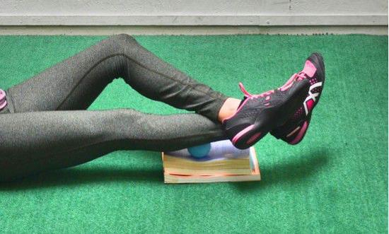 要放松你的小腿肚,网球非常有用, 如果需要的话,在上面交叉另一条腿帮助施加更大的压力。